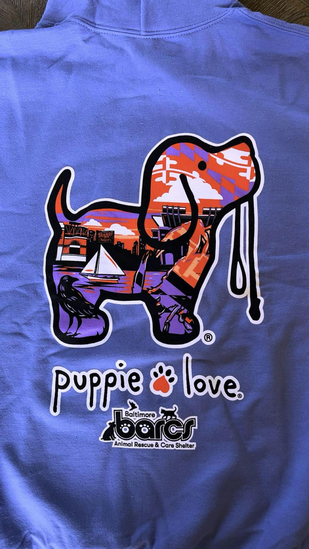 This shirt is part of Puppie Love's Collabs for a Cause program, where 10% of the net sales from this shirt will be donated to BARCS, an animal shelter in Baltimore, MD. Read more about this organization HERE!